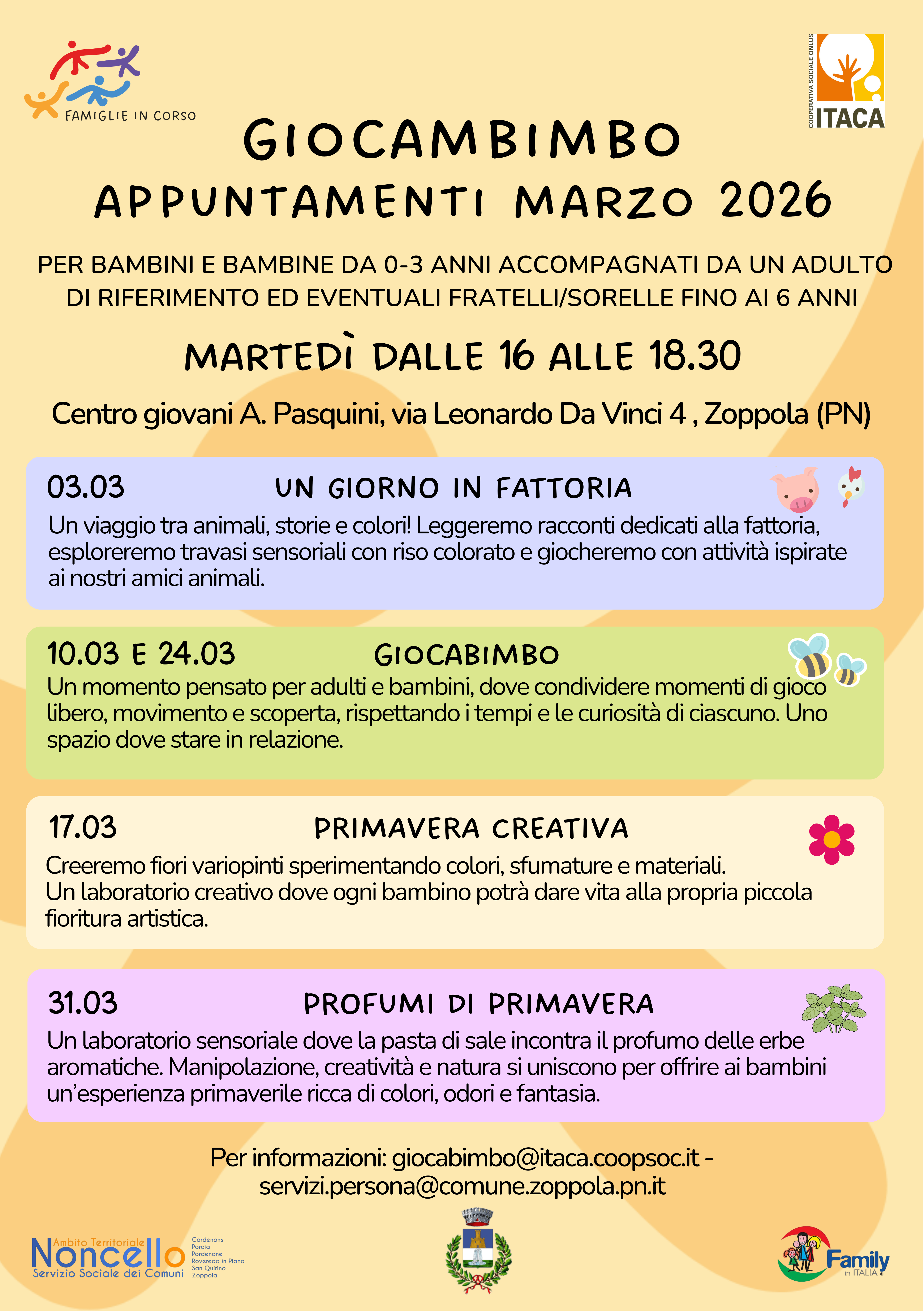 Nuovi appuntamenti per Marzo 2006 con le attività di Giocabimbo per bambini da 0 a 3 anni ed eventuali fratelli fino a 6 anni