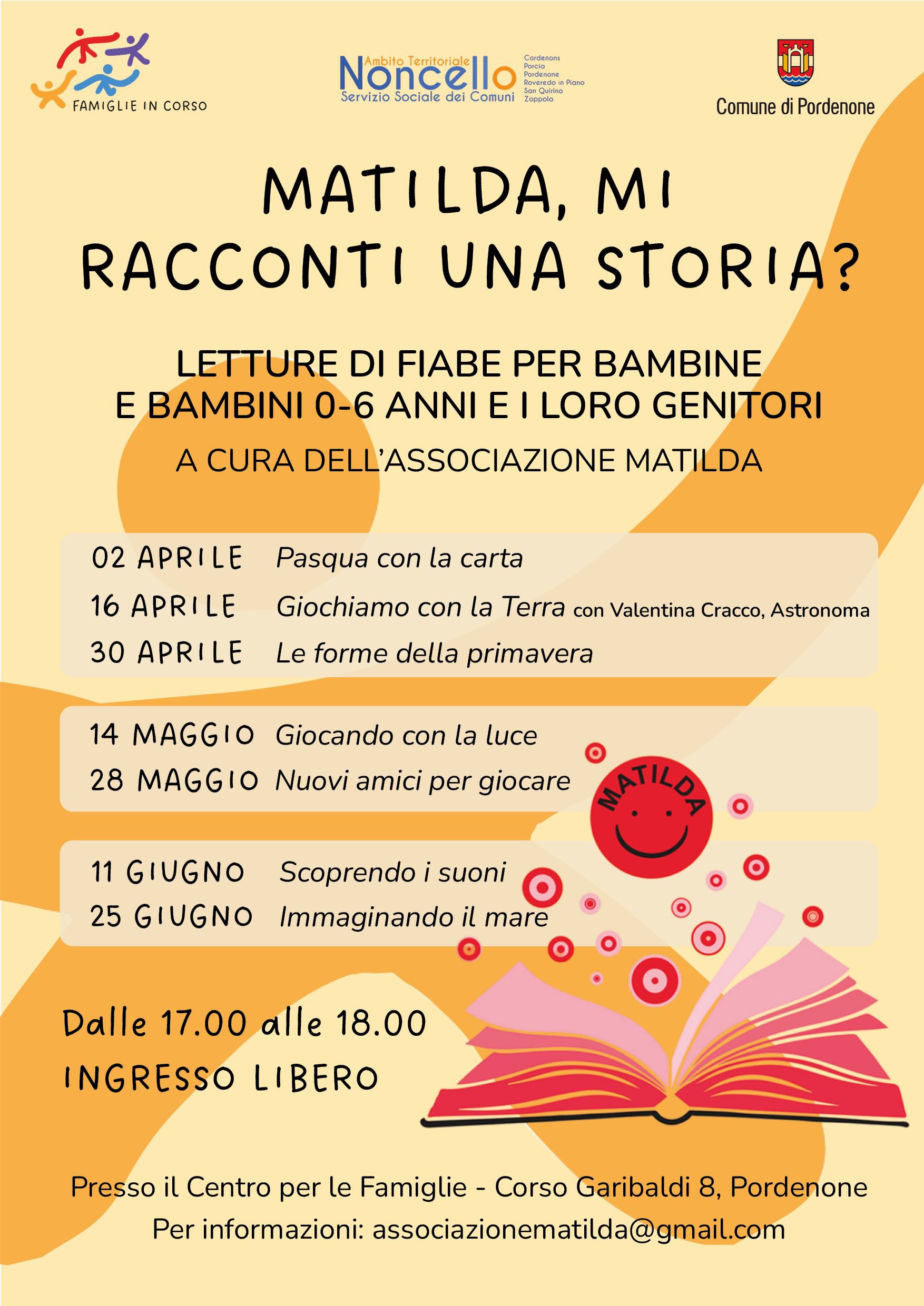 Letture di fiabe per bambini presso il centro per le famiglie, nuovo calendario da Aprile a Giugno.